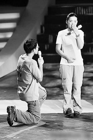 在節(jié)目現(xiàn)場,女友激動地接受了安國斐的求婚。 《長沙晚報》供圖