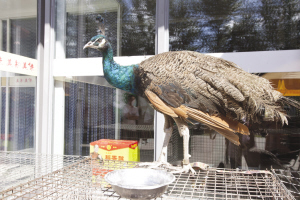 “我看見那孔雀在門外用繩子拴著,怪可憐的,聽說飯店還賣孔雀肉呢,你們得管這事!”16日,市民吳女士打來電話,反映一飯店用孔雀肉招攬生意。