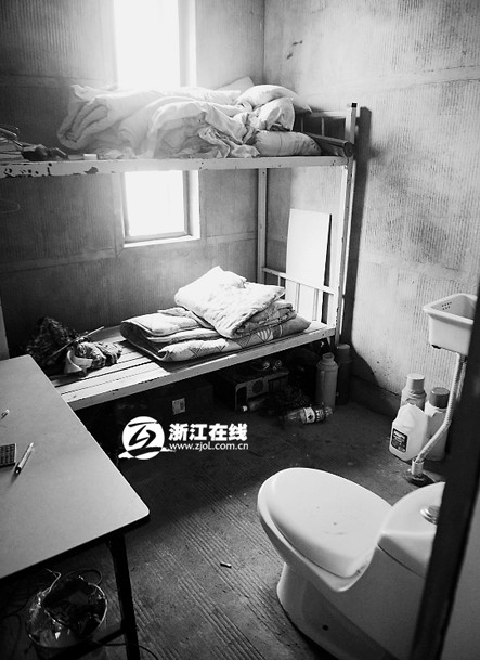 衛(wèi)生間里也擠下一張高低鋪