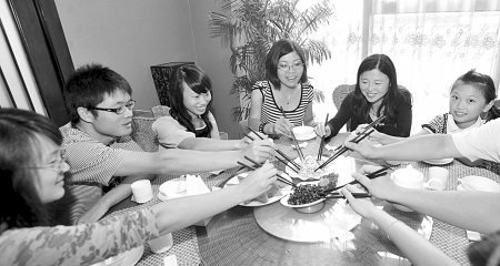 “鋤草”與征集的“飯友”在餐館吃飯。