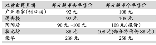 不過仔細一看價格,卻會讓記憶較好的市民驚奇不已,廣州酒家750克蛋黃蓮蓉月餅98元/盒,利口福的108元/盒,陶陶居的則是89元/盒,蓮香樓的最便宜,要79元/盒,而陶陶居的七星伴月要115元/盒,狀元坊七星伴月要108元/盒,普遍比去年貴了一截。