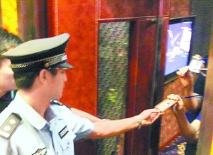 “帶IC卡了嗎?”幾名服務(wù)人員齊刷刷亮出了“上崗證”。昨晚,朝陽(yáng)警方對(duì)轄區(qū)內(nèi)娛樂(lè)場(chǎng)所進(jìn)行了突擊夜查。記者跟隨警方檢查的兩家KTV,其從業(yè)人員基本都已辦理了IC卡。