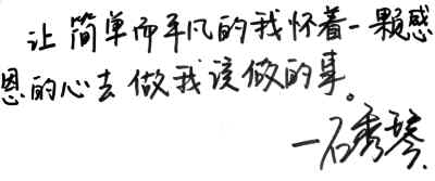 “我簡單而平凡,只是懷著一顆感恩的心去做我該做的事!边@是石秀琴的座右銘,也是她一直樂觀面對生活的精神支柱。