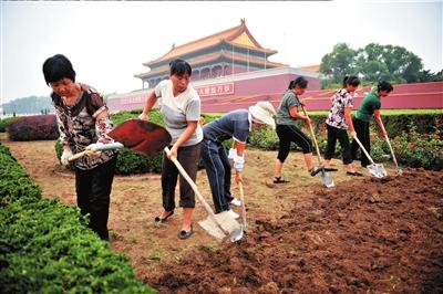 昨天,北京市園林綠化局表示,國慶花卉布置方案敲定,今年國慶,天安門廣場中心花壇首次大“變臉”,將呈現(xiàn)一朵巨型立體“牡丹”。昨天下午,數(shù)十名園林工人已開始入場施工。