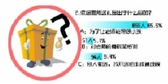 “別人都送我不送,怕小孩遭到歧視!边@個想法讓50%的網(wǎng)友極不情愿地打開了錢袋子,紛紛在教師節(jié)走進(jìn)老師的家里送禮。而令人憂慮的是,在這份調(diào)查中,很少有人是出于尊敬和感謝而在教師節(jié)給老師送一份禮物。