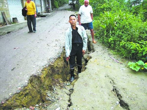 在連續(xù)暴雨襲擊后,資中雙龍鎮(zhèn)狀元村出現(xiàn)了一條長達(dá)500多米的地陷裂縫,讓許多村民的房屋、莊稼等受損。令村民更擔(dān)心的是,地陷裂縫還在進(jìn)一步塌陷。目前,雙龍鎮(zhèn)政府的干部組成了2個(gè)工作組,8人輪流監(jiān)控地陷裂縫,晴天4小時(shí)觀測一次,雨天24小時(shí)監(jiān)控,一旦發(fā)生險(xiǎn)情,立即組織村民轉(zhuǎn)移。地陷裂縫到底是什么原因產(chǎn)生的?昨日,成都商報(bào)記者來到狀元村采訪。