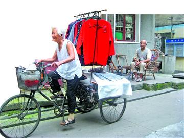 三輪車上,掛滿了她一個人去漢正街買來的各種廉價服飾