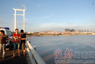 犯罪嫌疑人在晉江大橋拋尸地點(diǎn)指認(rèn)現(xiàn)場(chǎng)。(圖片來(lái)源:東南網(wǎng))