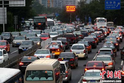 圖為19日晚高峰時(shí)段的東二環(huán)建國門橋北側(cè)。中新社記者富田攝(圖片來源:中新網(wǎng))