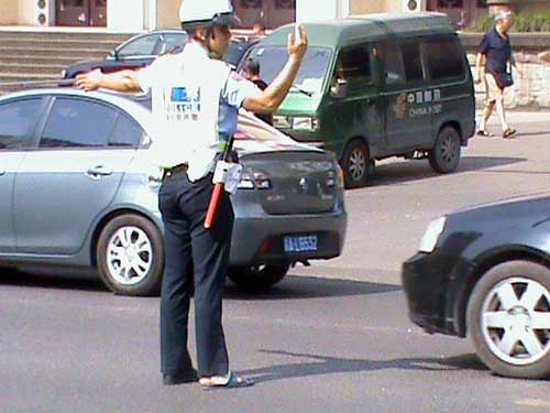 執(zhí)勤后,頂著烈日離開 來源兩江論壇