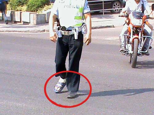 腳腫得這么厲害,還在堅(jiān)持工作,網(wǎng)友心里“佩服慘了”。他用照片記錄下了這一幕,并發(fā)到網(wǎng)上。照片中的交巡警右腳腳踝處綁著厚厚的繃帶,腳上穿著拖鞋,全身的力量仿佛僅能依靠左腳支撐,在烈日下一絲不茍的指揮著交通。