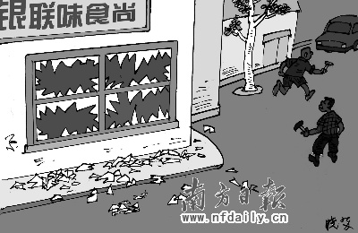 據(jù)記者從店方了解,三次打砸已造成經(jīng)濟(jì)損失3萬多元,更主要的是一些顧客來此消費(fèi)感到擔(dān)心。劉碧軍說:“事情發(fā)生后,店里一些年輕員工提出辭職,他們說內(nèi)心有恐懼感。接二連三發(fā)生此類打砸事件,使人無所適從。這兩天不少加盟商紛紛打電話來詢問,他們的經(jīng)營也受到很大影響!
