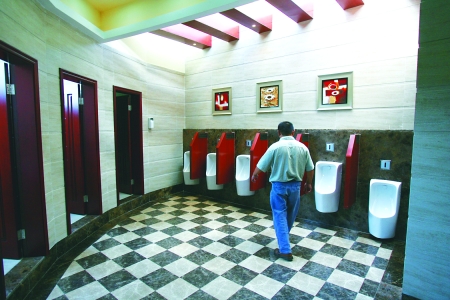 男女蹲位比是2:3,免得女士等候。三星級以上的自動沖水,而且設(shè)有兒童小便器。 還要有空調(diào)。