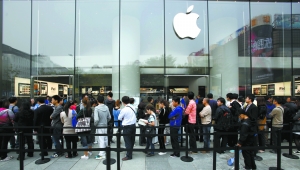 昨日下午5點(diǎn)半,現(xiàn)場(chǎng)仍有排隊(duì)的“果粉”們,全天排隊(duì)總?cè)藬?shù)超過3000人。