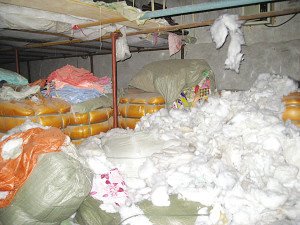 記者在現(xiàn)場暗訪發(fā)現(xiàn),這家占地面積較大的作坊,確實(shí)涉嫌用黑心棉作原料加工生產(chǎn)棉胎、棉被,地上堆積的成品的多達(dá)數(shù)百床,有的已被包扎好準(zhǔn)備運(yùn)走。記者拍照取證后當(dāng)即向當(dāng)?shù)氐墓ど滩块T舉報(bào),工商部門很快趕到現(xiàn)場,對(duì)現(xiàn)場成品進(jìn)行了查封,查獲該作坊的生意往來賬簿,發(fā)現(xiàn)南京一幼兒園也購入了6斤黑心棉,其余大量劣質(zhì)棉已銷往南京市場。