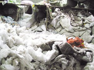 昨天上午,記者接到南京市民張先生的舉報(bào)電話,稱在南京雨花臺(tái)區(qū)西善橋街道盛周路上,有一家大型的黑心棉生產(chǎn)作坊,大量生產(chǎn)劣質(zhì)棉被。
