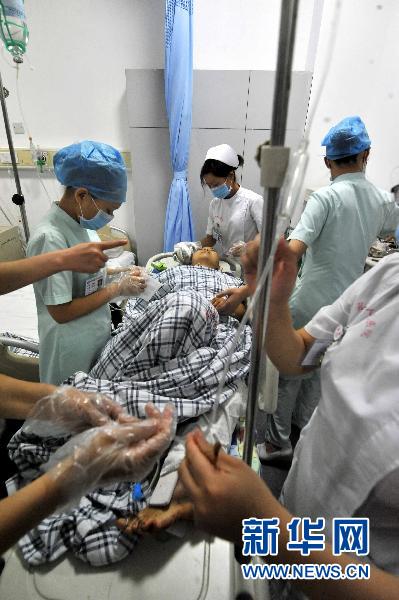 資料圖片:6月29日16時45分,深圳東部華僑城太空迷航娛樂項目發(fā)生重大安全事故,造成6死10傷。圖為一名傷者在深圳鹽田區(qū)人民醫(yī)院接受搶救。 新華社記者 陳曄華 攝
