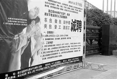 圖為溫州各大小企業(yè)門口現在已開始擺出大型招工牌