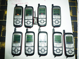 “美麗少婦”和“律師”設(shè)征婚陷阱用的小靈通和銀行卡。(圖片來(lái)源:揚(yáng)子晚報(bào))