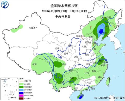 據(jù)氣象資料統(tǒng)計(jì),9月30日14時(shí)至10月1日14時(shí),重慶東南部、貴州東北部、湖南西北部、廣西東南部和海南中東部等地出現(xiàn)中到大雨,貴州東北部、湖南西北部和海南東部的部分地區(qū)出現(xiàn)暴雨,海南東南部局地出現(xiàn)降雨量110~130毫米的大暴雨;另外,青海中南部出現(xiàn)降雪和雨夾雪,降水量有3~5毫米。