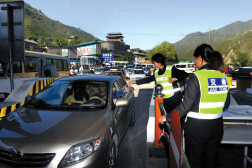 資料圖片:4日,京藏高速居庸關(guān)長(zhǎng)城收費(fèi)站,車(chē)多擁堵。 記者 尹亞飛 攝