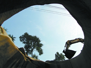 在北京市延慶縣大莊科鄉(xiāng),昌(平)赤(城)公路邊的白龍?zhí),最近“冒出”了一個神秘的巨型大石坑。