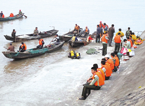 在翻滾的江水中,還有6個人若隱若現(xiàn)。一艘紹興的漁船剛好在附近水域作業(yè),船上的人救起了一對落水的母女。