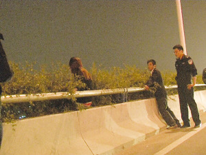 輕生女在高架橋上不聽勸說。(圖片來源:揚子晚報)