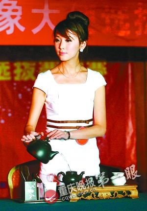 參賽選手的茶藝表演體現(xiàn)了一定的文化氣質(zhì)記者 錢(qián)波 攝(圖片來(lái)源:重慶晚報(bào))