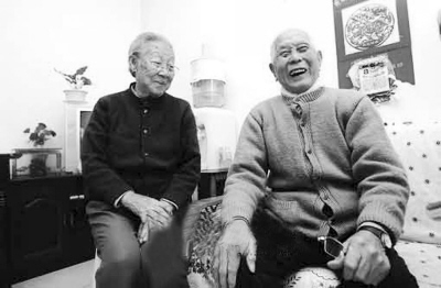 10月上旬的一天上午,河南鄭州市香山路中州頤養(yǎng)家園,93歲的范銘春,正在屋內(nèi)練字。他已經(jīng)滿頭白發(fā),步履有些蹣跚,但面色紅潤,精神矍鑠,看到有人過來,就樂呵呵地迎出來。一同走出來的老伴范志銘,也已經(jīng)90歲,頭發(fā)斑白,戴著一副老花鏡。