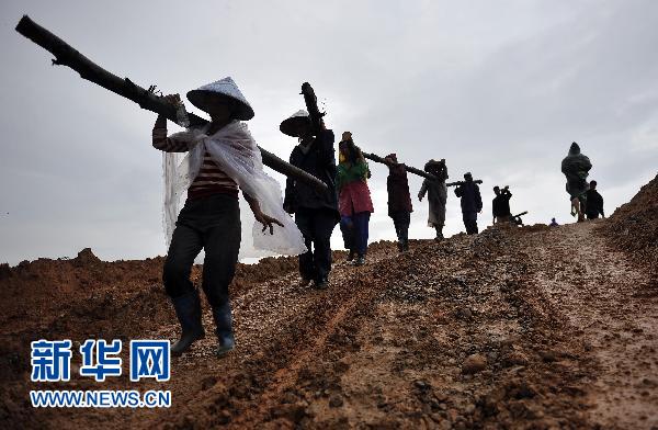 10月18日,海南省陵水縣竹俐水庫周邊村莊的群眾正在搬運木樁,加固堤壩。據(jù)海南省氣象臺消息,超強臺風(fēng)“鲇魚”中心附近最大風(fēng)力達(dá)17級,正以每小時25公里左右的速度向偏西方向移動,將于18日夜間進(jìn)入南海東部海面,逼近海南島。目前,海南省陵水縣正加緊水庫泄洪和加固病險水庫,全力準(zhǔn)備迎戰(zhàn)“鲇魚”。新華社記者 郭程 攝