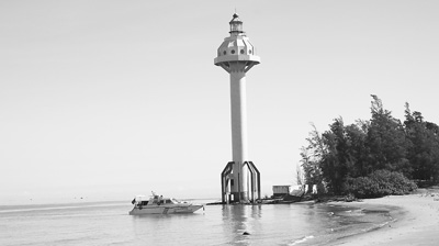 由于羅斗沙島位于瓊州海峽重要航道上,為確保來往船只安全,上世紀90年代中期,廣東省航道管理局在羅斗沙島修建了一座高達50米的燈塔,該燈塔遂成羅斗沙島標志,但10多年過去了,原本離岸線70米遠的燈塔,現(xiàn)在已經(jīng)孤零零矗立在了海邊,而原本深埋在沙面之下的燈塔底基已經(jīng)外露,裸露部分足有3米。