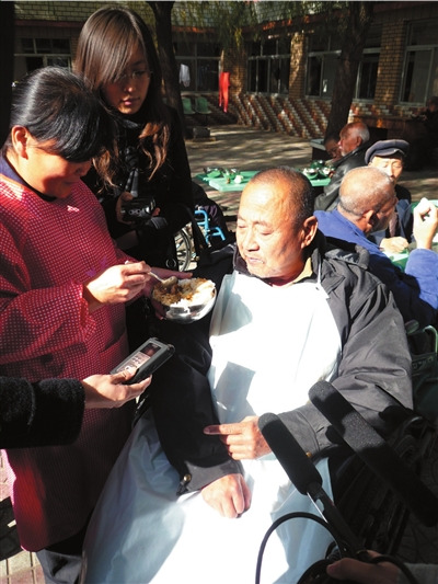 孫萬(wàn)祥生活不能自理,吃飯需要護(hù)工照顧。 記者王麗娜攝