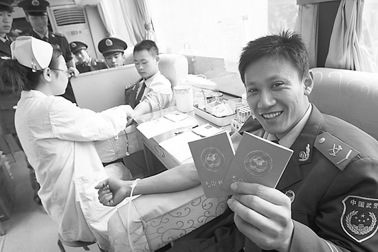 重慶籍老戰(zhàn)士張健在展示獻(xiàn)血證,當(dāng)兵5年他已獻(xiàn)了6次血。李博攝(資料圖片)