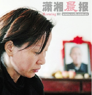 昨日,岳麓區(qū)的一處小區(qū)里,王華在父親遺像前傷痛不已。