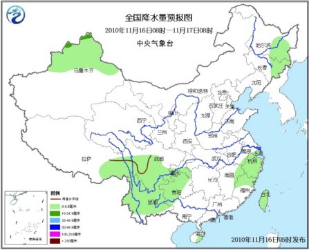 17日08時至18日08時,新疆北部和東部、青海北部、西藏東南部、甘肅西部、川西高原北部、內(nèi)蒙古西部和東北部、黑龍江西北部等地有小到中雪(雨)或雨夾雪,其中,黑龍江北部山區(qū)有大雪;西南地區(qū)大部、湖南大部、江西中部以及臺灣等地有小到中雨或陣雨。新疆北部、內(nèi)蒙古中東部、甘肅大部、寧夏北部、華北北部等地有4~6級風,新疆山口地區(qū)風力可達7~8級。渤海、黃海北部海域?qū)⒂?~6級西南風;東海南部海域、北部灣將有5~6級東北風;臺灣海峽、臺灣以東洋面和以南海域、南海東北部海域?qū)⒂?~7級、陣風8級的東北風;南海西北部和中部海域?qū)⒂?~7級東北風。