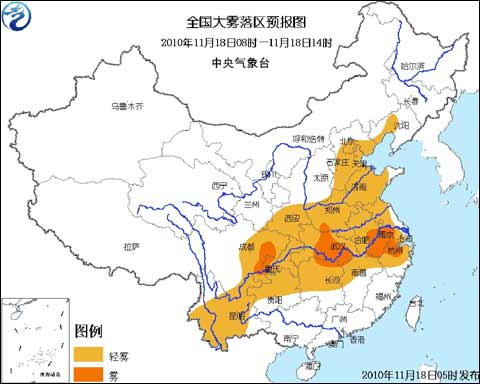 中央氣象臺(tái)11月18日06時(shí)繼續(xù)發(fā)布大霧藍(lán)色預(yù)警:
