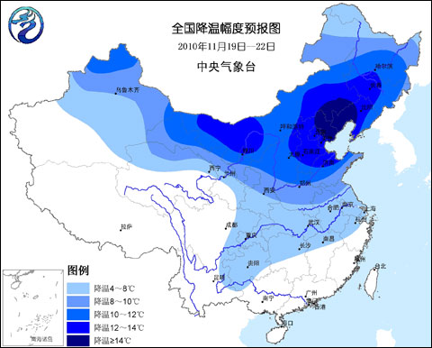 11月19日~22日,受較強(qiáng)冷空氣影響,我國自西向東將出現(xiàn)大范圍的大風(fēng)降溫天氣。新疆北部和東部、甘肅、青海北部、內(nèi)蒙古、寧夏、陜西、華北、東北、黃淮、江淮、江南北部及西南地區(qū)東部的部分地區(qū)降溫幅度普遍達(dá)4~8℃。其中,新疆北部、內(nèi)蒙古中西部、華北、東北地區(qū)中南部的部分地區(qū)降溫幅度可達(dá)10~14℃。