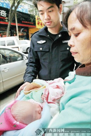 接到報警后,南寧市公安局興寧分局興寧派出所值班民警立即趕到現(xiàn)場。經(jīng)檢查,在嬰兒的被褥里有一個信封,在信封表面上,疑似小孩的母親寫下這樣一段話“希望好心人幫忙把孩子送到兒童福利院。好人一生平安。寶寶,媽媽不負責任生下了你,一個人沒有能力養(yǎng)你,媽媽對不起你!倍谛欧鈨(nèi),則放有3900元現(xiàn)金。