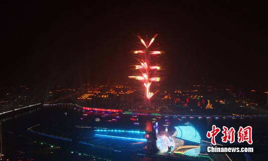 閉幕式現(xiàn)場(chǎng),焰火倒計(jì)時(shí)自上而下噴出,在兩岸煙花景觀的襯托下,“羊”字華麗現(xiàn)身,清晰圓夢(mèng)于閉幕式。高500米,寬300米,總面積達(dá)15萬(wàn)平方米的漢字造型“羊”字完美綻放,足足停留8秒,驚艷現(xiàn)場(chǎng)。