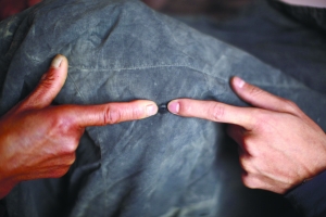 11月25日,云南瀘西縣,死者帶有槍眼的血衣。本報記者 王申 攝