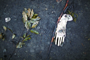 11月26日,云南瀘西縣小松地煤礦,槍擊現(xiàn)場遺留的醫(yī)用手套。本報記者 王申 攝