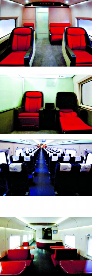 昨天,車頭細長、動感十足的京滬高鐵主力車型CRH380A動車組一比一實體模型在京亮相。京滬高鐵列車將全部實行16節(jié)車廂編組,定員1004人。中國北車集團有關(guān)負責人介紹,京滬高鐵列車將設(shè)殘疾人座位,其中VIP坐椅可完全平躺。