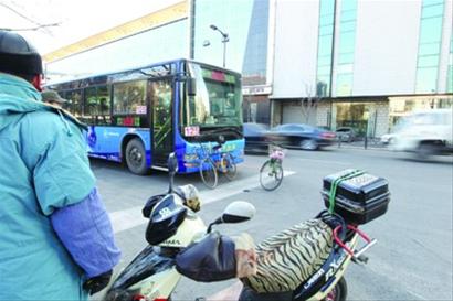 在電動(dòng)車(chē)、自行車(chē)車(chē)主極力向記者表達(dá)自己氣憤之情時(shí),125公交車(chē)司機(jī)還是坐在公交車(chē)?yán)镆粍?dòng)不動(dòng),依然沉默。