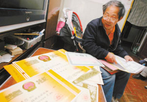 劉恭信搞一輩子發(fā)明換來一桌子的獎狀。記者 何曉剛 攝