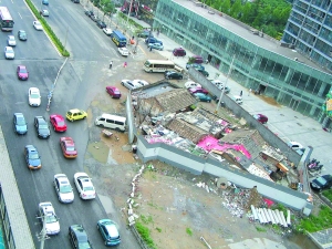 6月17日,曙光西路,由于“釘子戶”占道,馬路不得不繞彎。本報(bào)記者 王嘉寧 攝