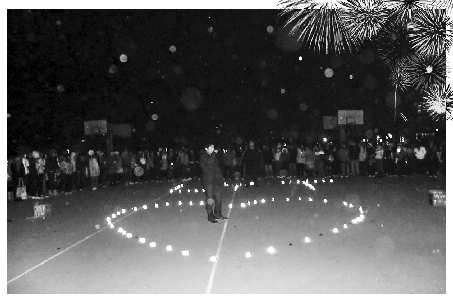 據(jù)該校大二女生蓓蓓(化名)回憶,當(dāng)晚9點(diǎn)30分許,她正和舍友去操場(chǎng)健身,忽然聽到一群男生在大聲喊,好奇地過(guò)去一看,發(fā)現(xiàn)在一號(hào)女生宿舍前,有一二十名男生燃放煙火,向女生宿舍喊話。男生們還用酒精燈在小半個(gè)籃球場(chǎng)大的空地上,擺出“心”形。求愛“男主角”站在其中打電話。