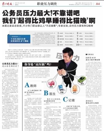 “我們工作壓力排第一?怎么可能?”齊磊在聽(tīng)說(shuō)公務(wù)員竟然被排在《壓力最大職業(yè)排行榜》第一時(shí),語(yǔ)氣里滿是驚訝。