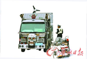 據(jù)常平交警大隊的一位交警介紹,楊祖湘的車之所以會被交警查扣,那是因為他駕駛該車上路行駛。因為,按照有關規(guī)定,經(jīng)過如此大規(guī)模改裝的貨車不允許上路行駛。