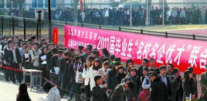 上海高校校園招聘進(jìn)入高峰。圖為“名校名企優(yōu)才”聯(lián)合招聘會(huì)在東華大學(xué)舉行。